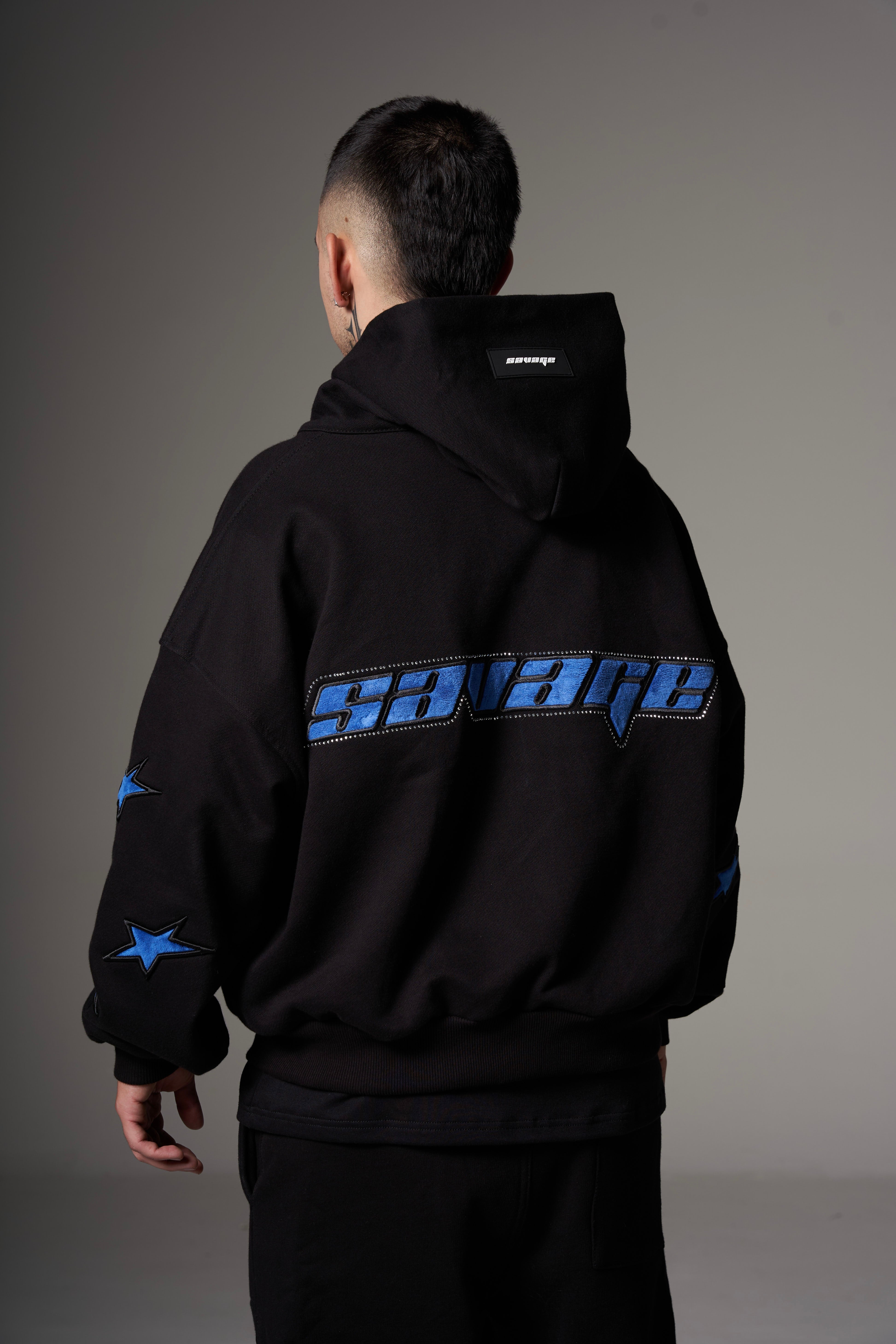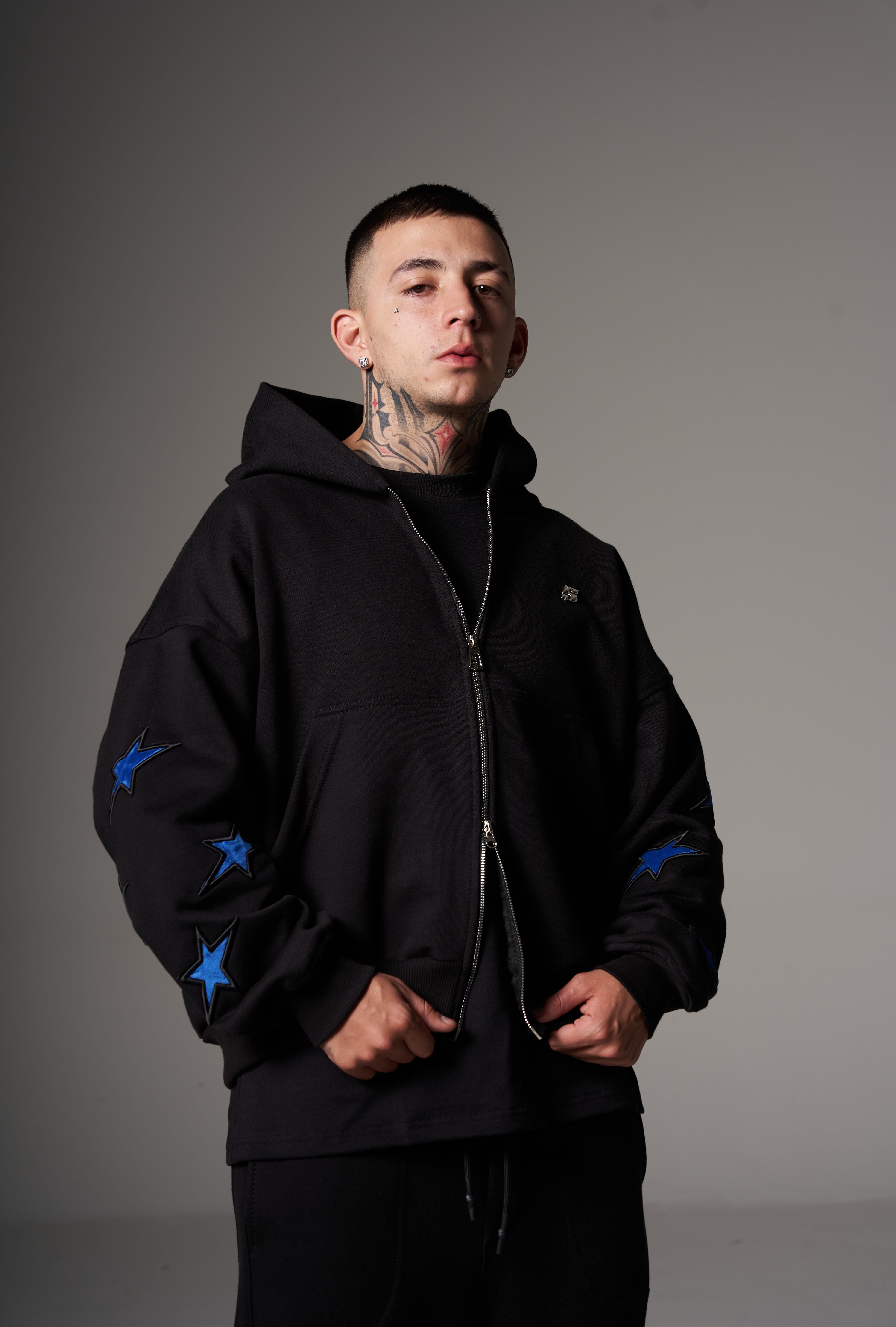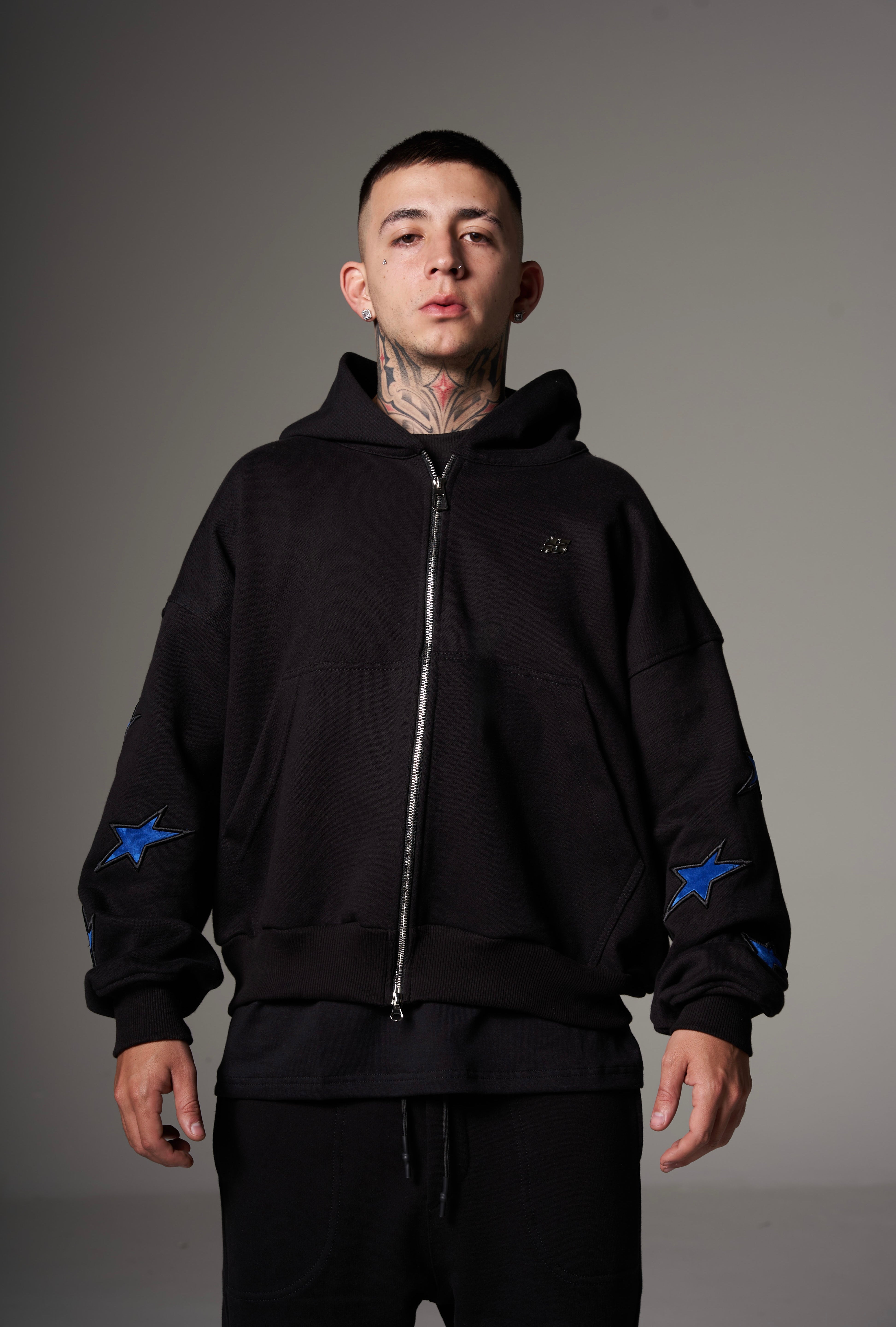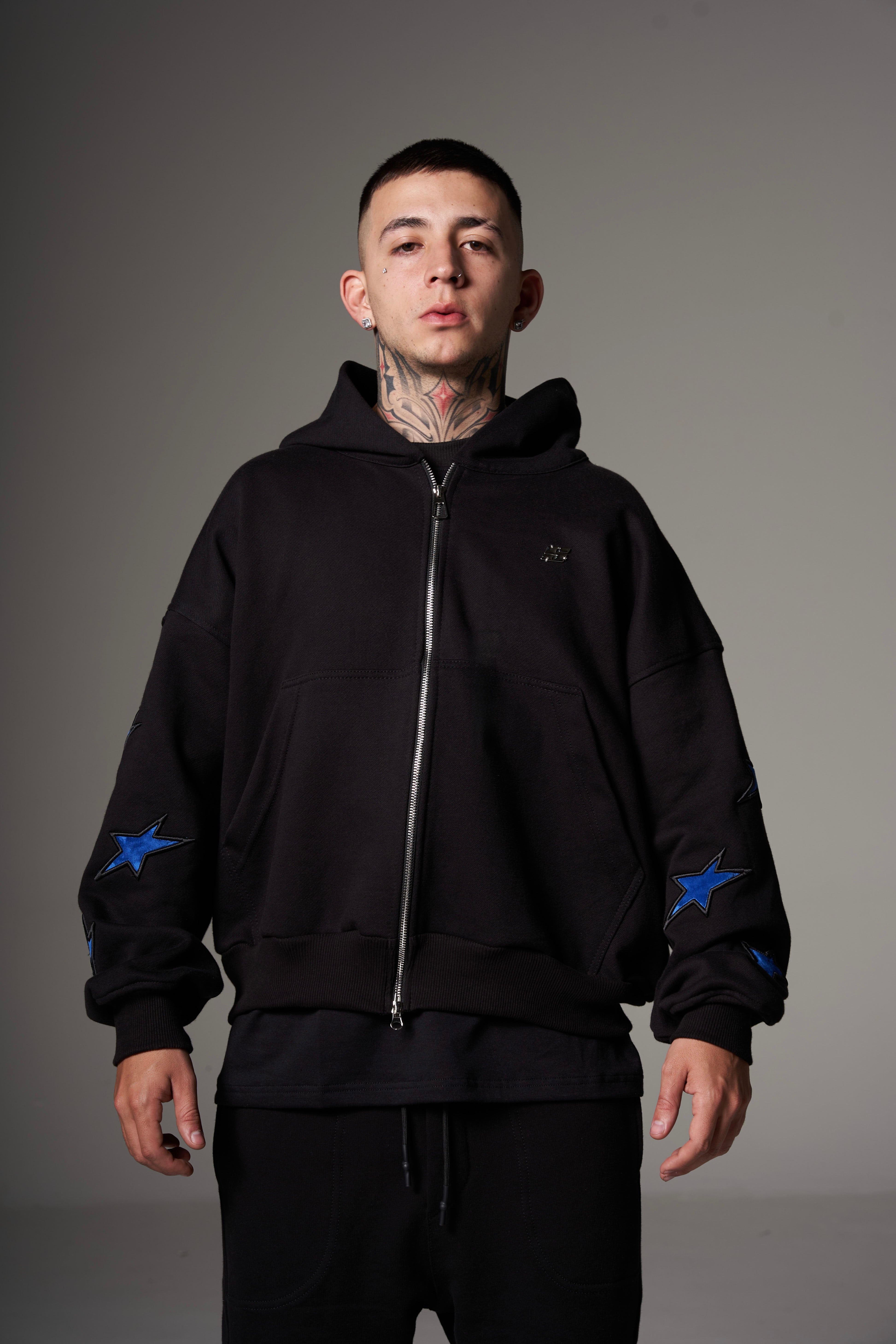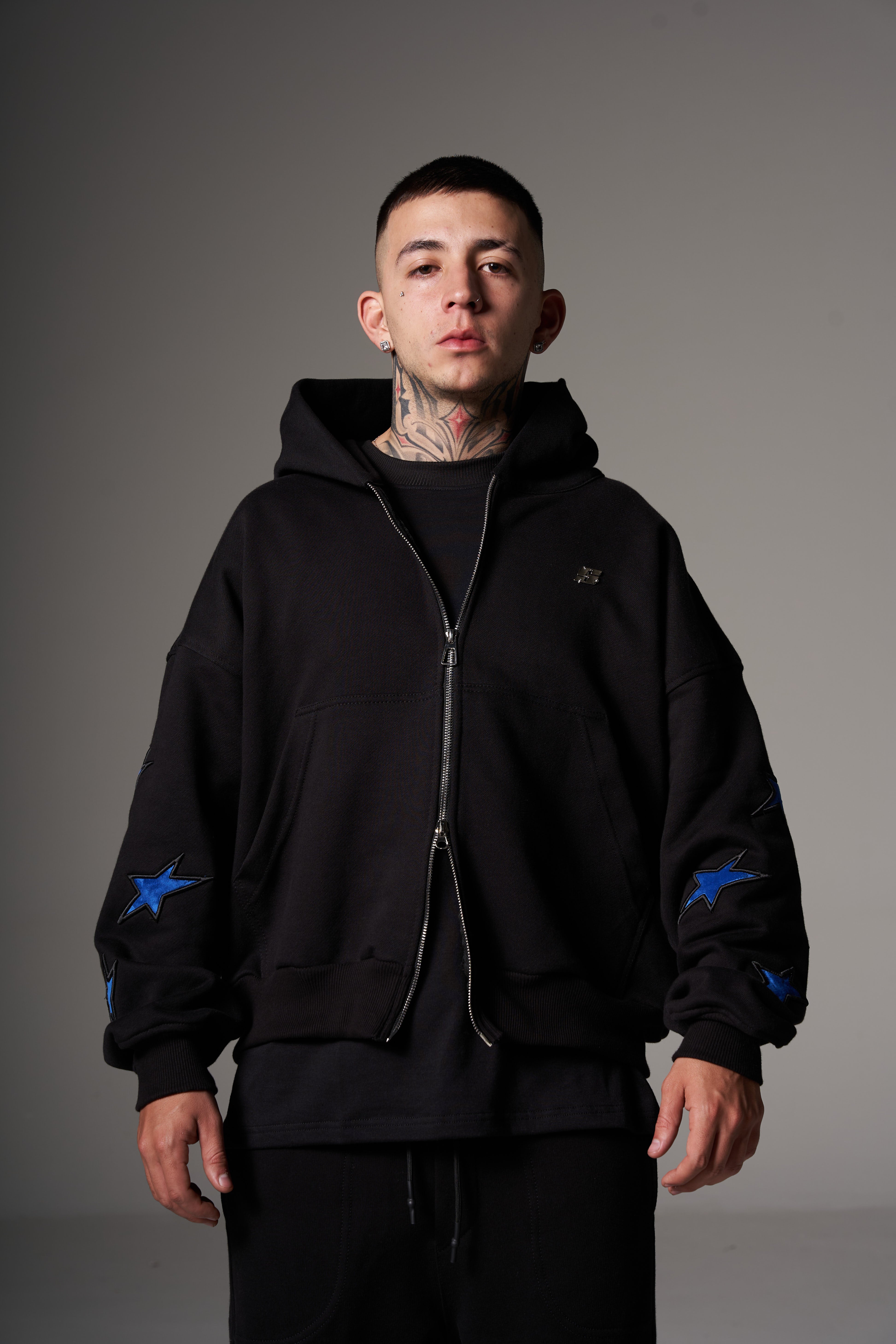 Double Zip Hoodie Boxy fit Blue stars