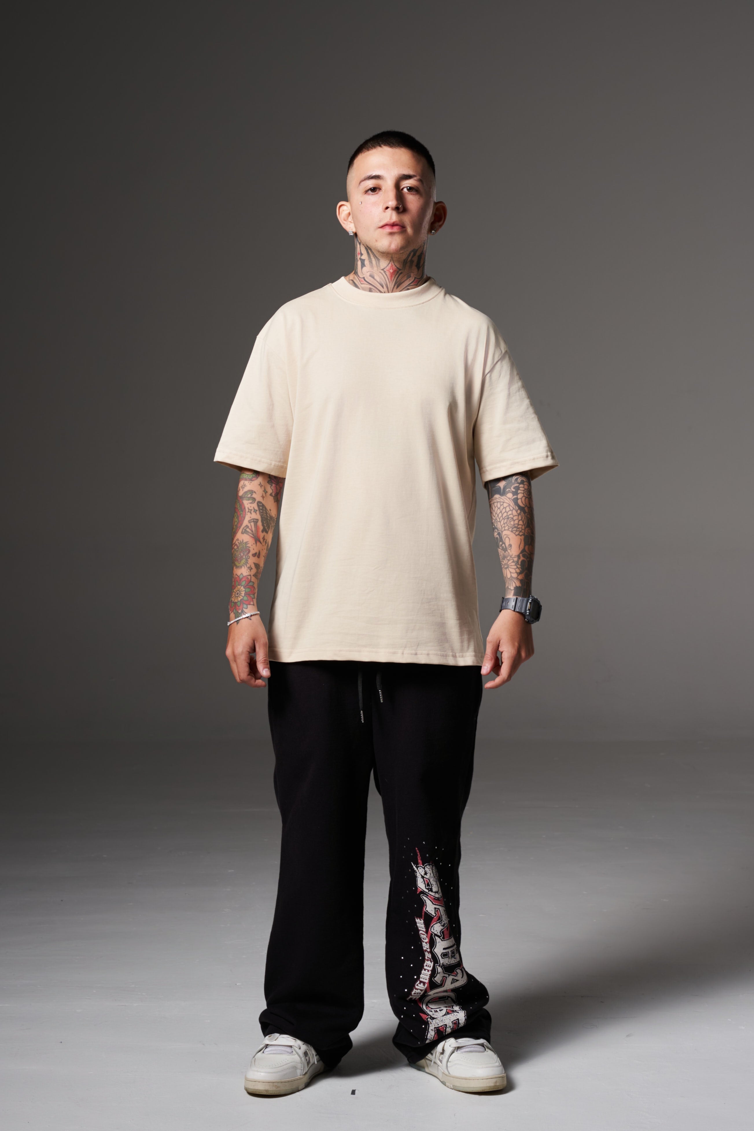 Camiseta sin marquillas  confeccionada con Tela premium 100% Algodón  de ALTO GRAMAJE (250 gramos) , Desarrollada por un equipo de diseñadores especializados en moda urbana.